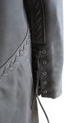 A blend of old world beauty and modern construction. unique seamwork—a technique developed by Knightweave’s production team that blends old-world craftsmanship with modern durability. Each primary exterior seam features a hand stitched leather strip, carefully crafted for a artisanal, timeworn, handmade look. This piece is then machine-stitched into the garment for lasting strength, ensuring a perfect balance of handcrafted detail and a construction that will last for years. Whether worn on city streets or in untamed landscapes, this duster is more than a simple outer layer—it’s a statement of purpose.