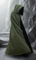 Waterproof ranger cloak with minky faux fur lining and hood, modeled in fantasy terrain