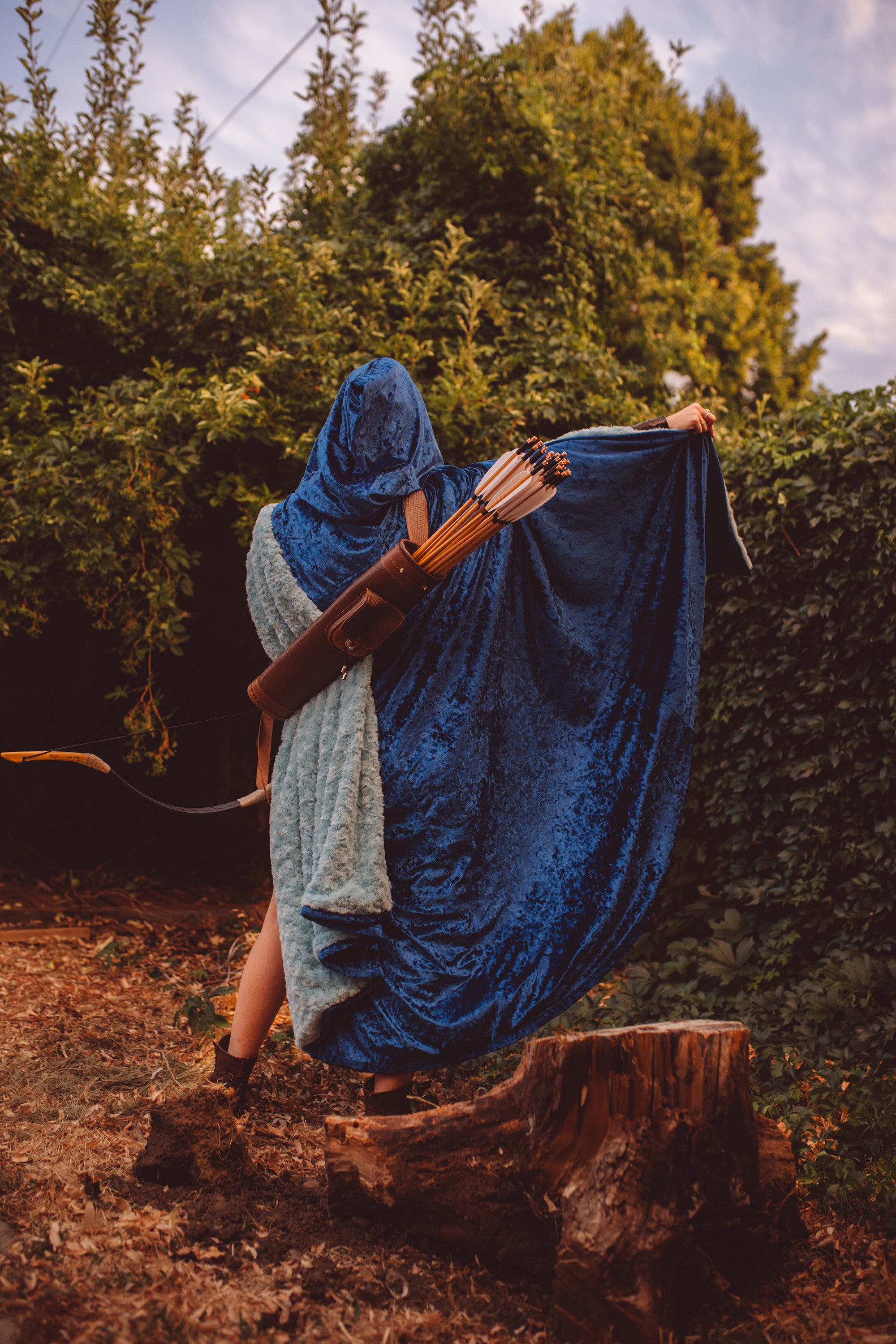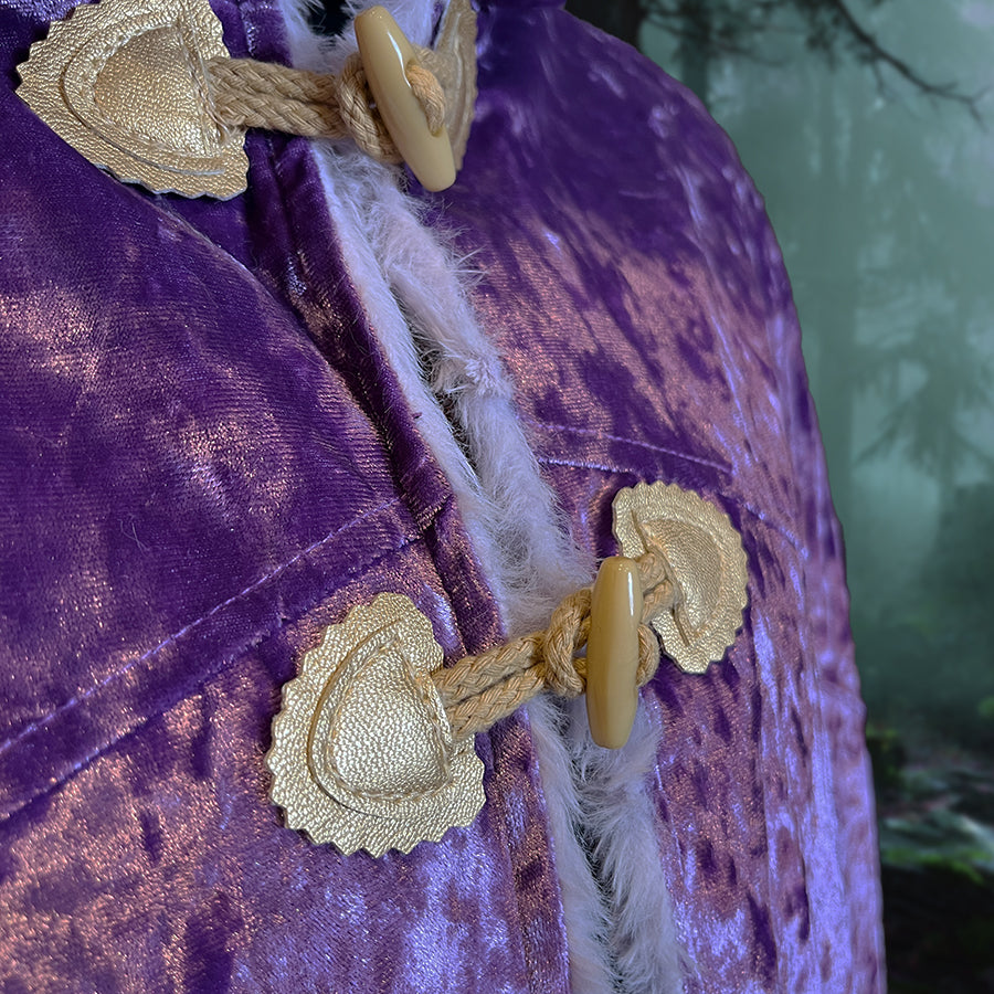 Lined with dense, micro-fiber minky faux fur, this warm winter cloak will shield you against even the harshest cold. The minky shimmer outer shell provides a regal look, making it the perfect choice for cosplay, LARPing, festivals, and everyday wear.