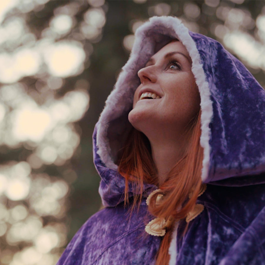 A crushed velvet exterior catches the light with a subtle shimmer, giving the cloak an elevated, elegant look.