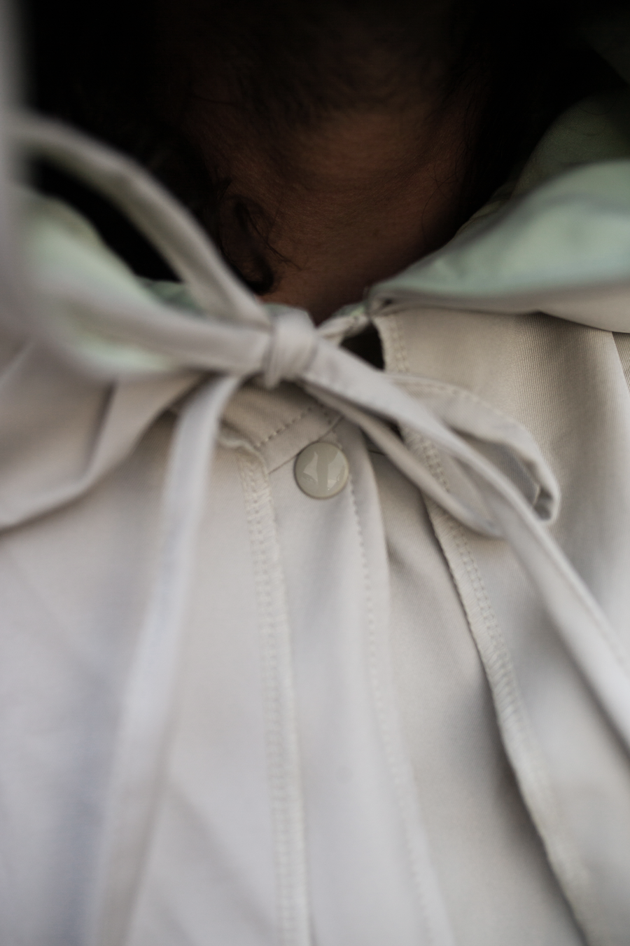 A tie collar closure and front snap buttons lock out rain. The material reflects light differently than it's Air Suede counterpart, giving this version a slightly brighter color in some lighting.