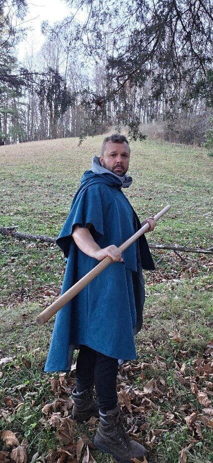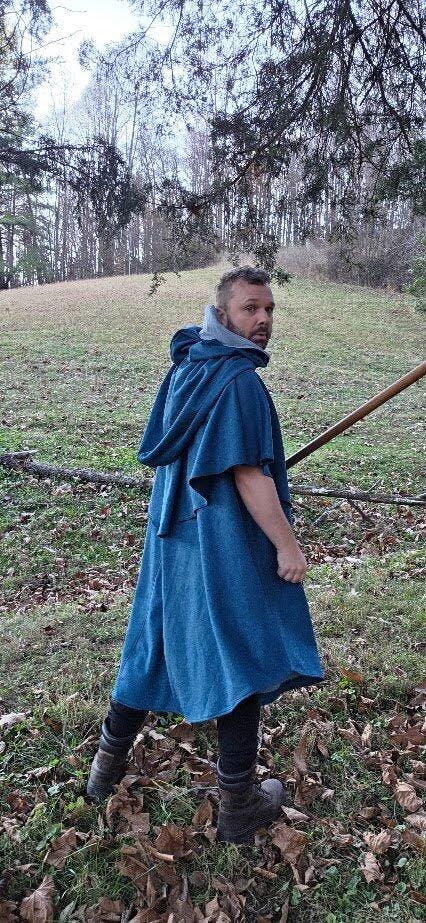 The Knightweave Scout Cloak is a half-length, unisex cloak designed for those who move swiftly between worlds—whether you're walking city streets, wandering festival grounds, or answering the call of the wild. With a flowing cut and distinct fantasy silhouette, the Scout Cloak brings medieval flair into the modern age.