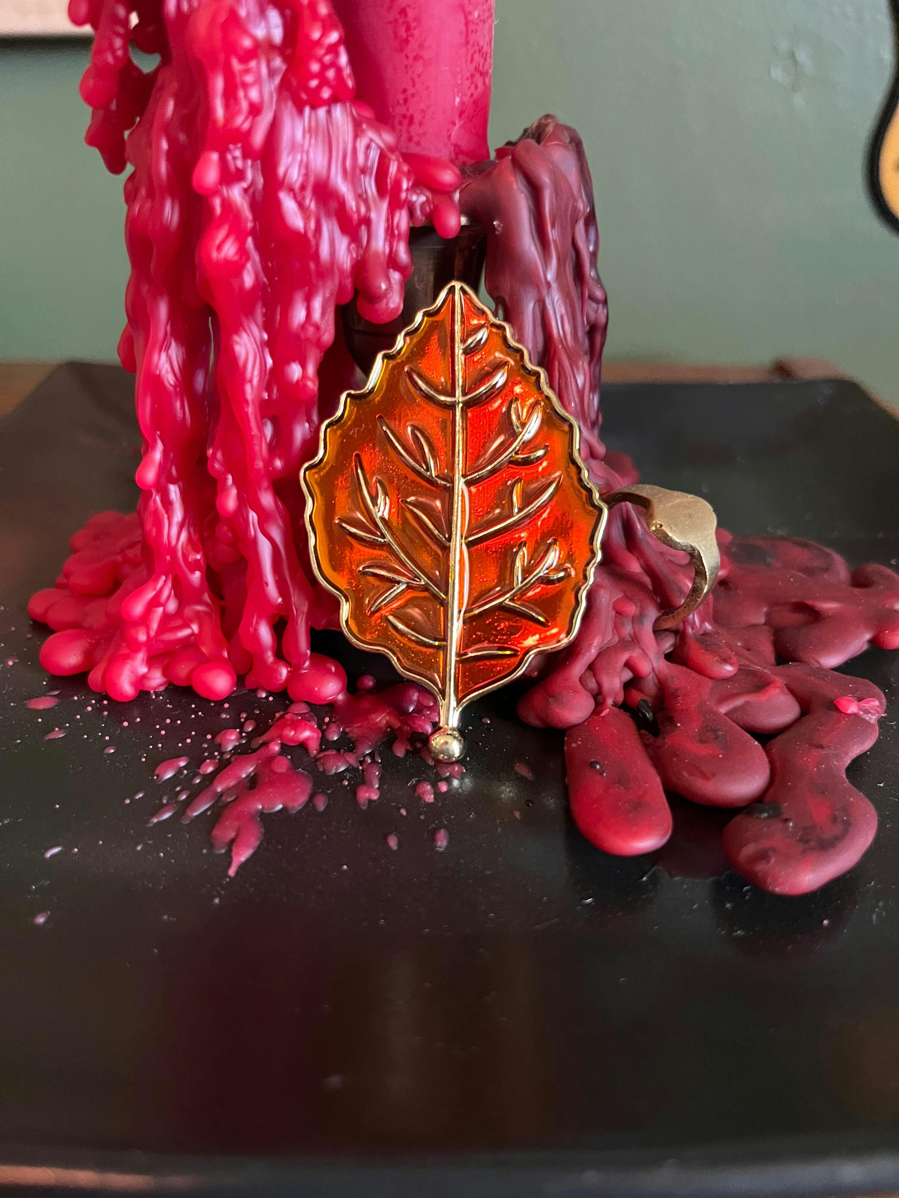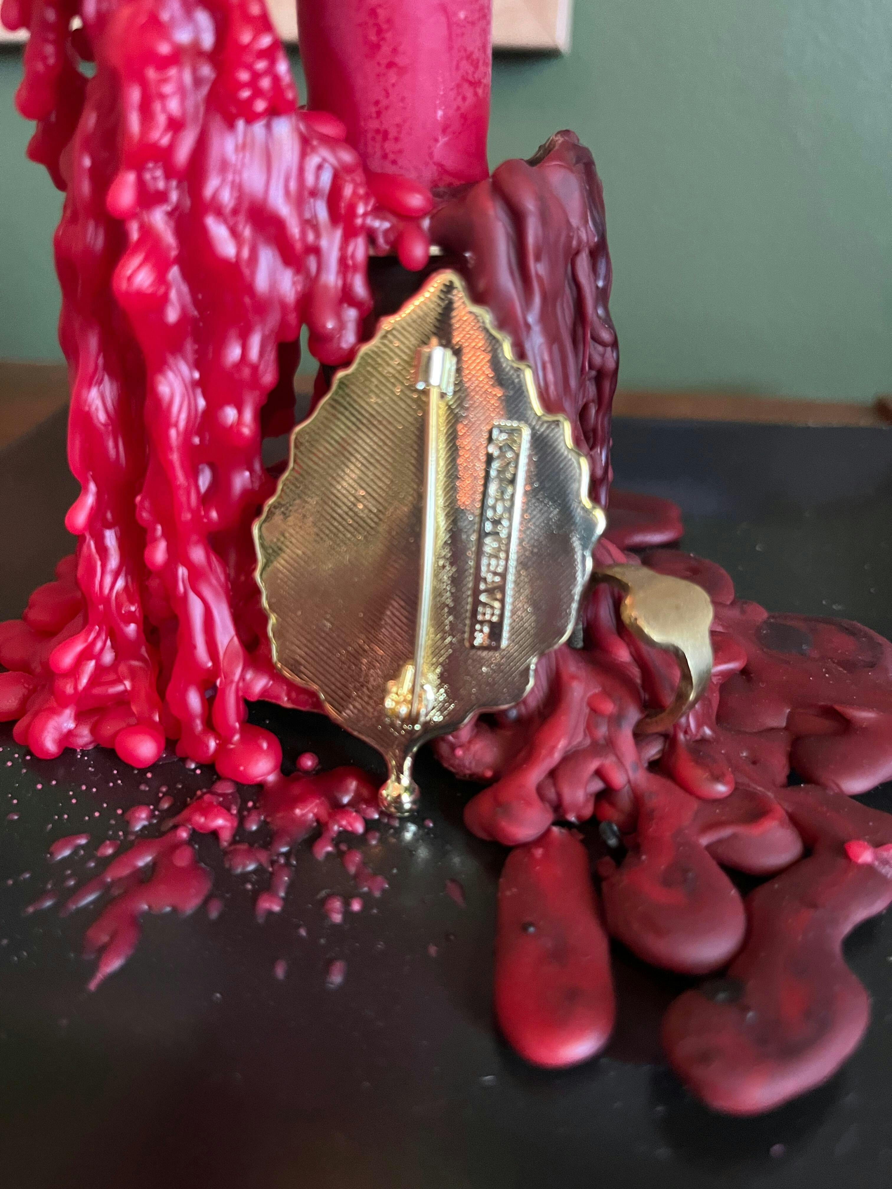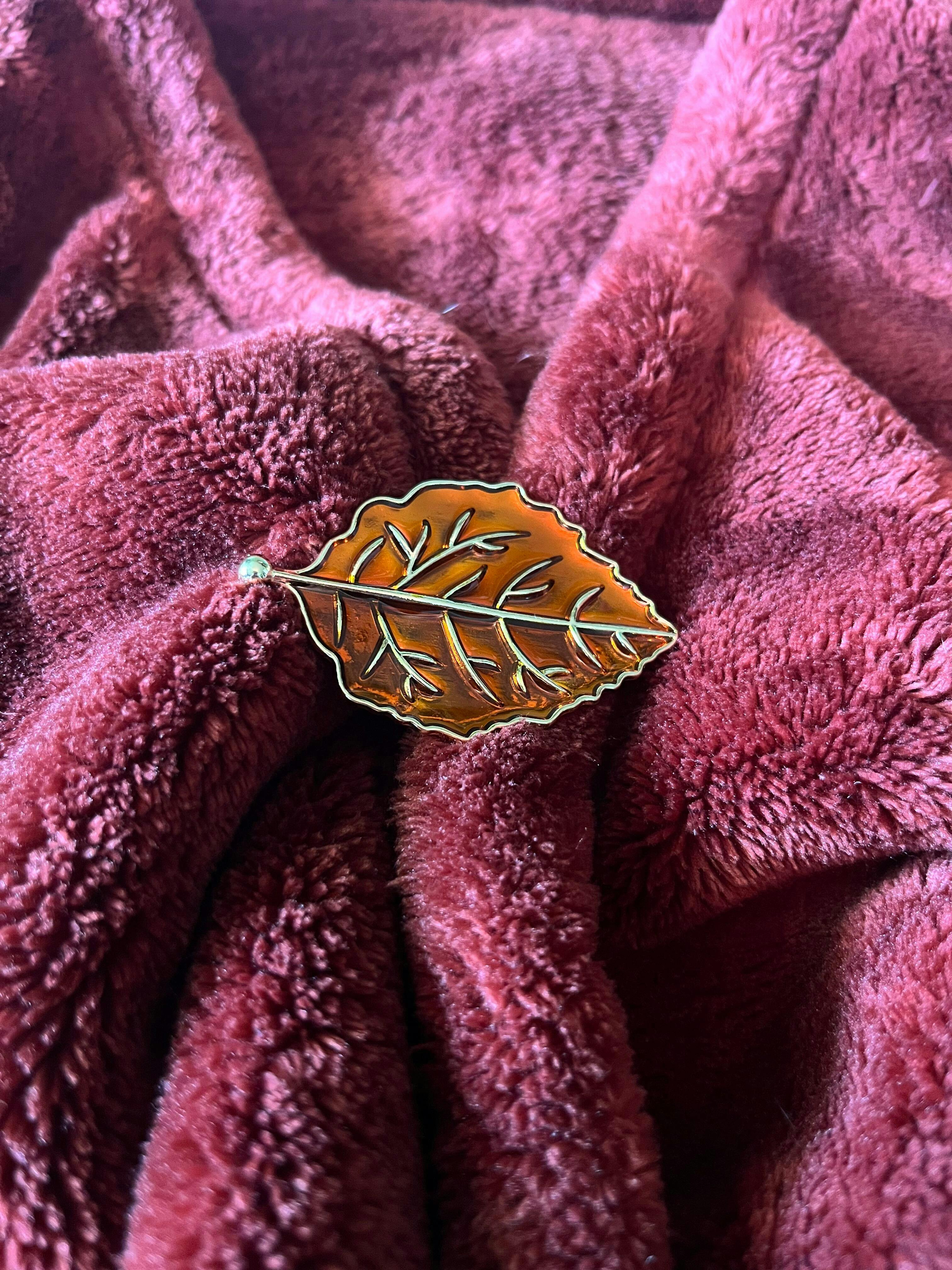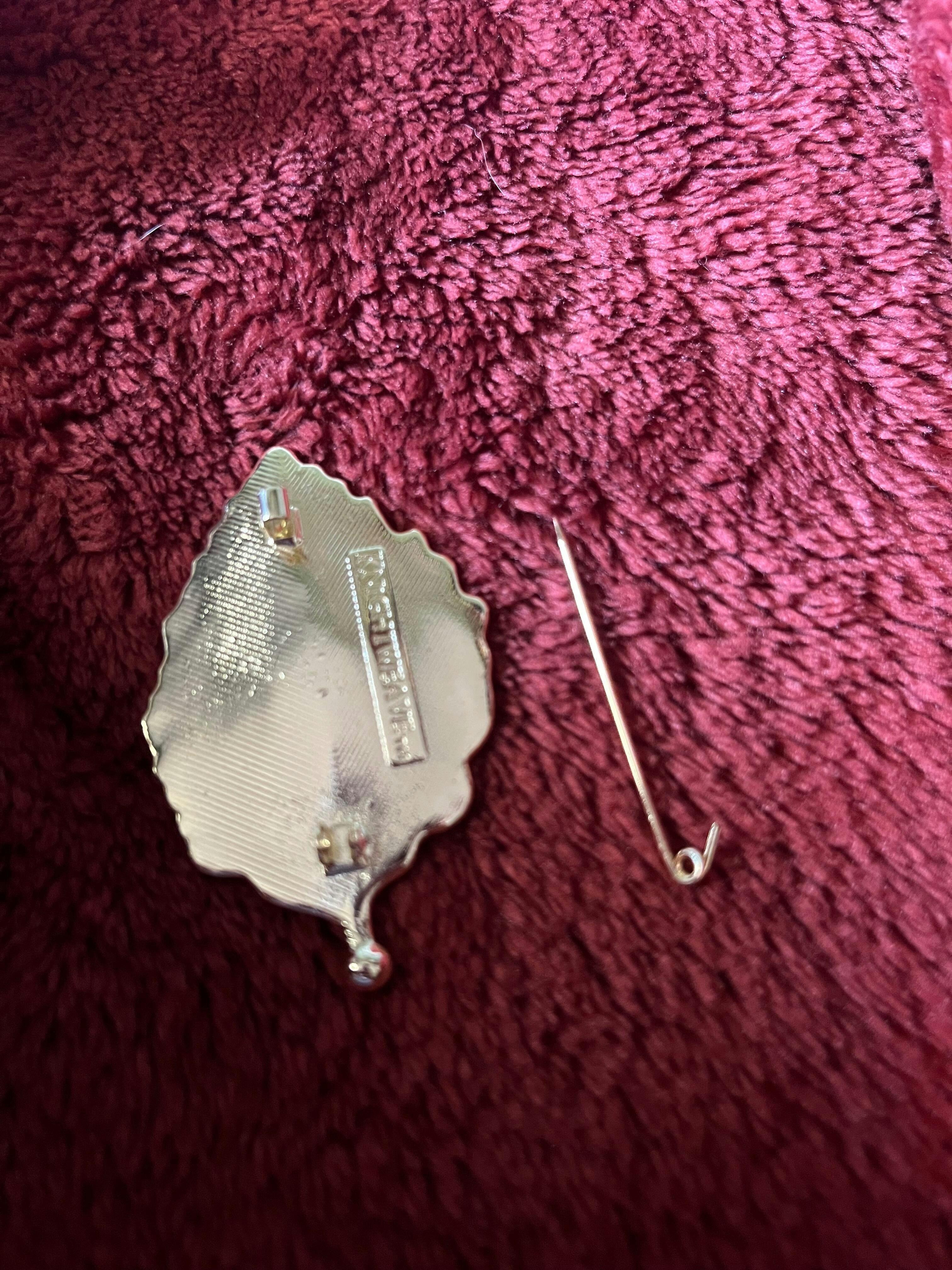 Single leaf color shift brooches change color tones in various light conditions and feature a durable rear clasp and smooth finish.